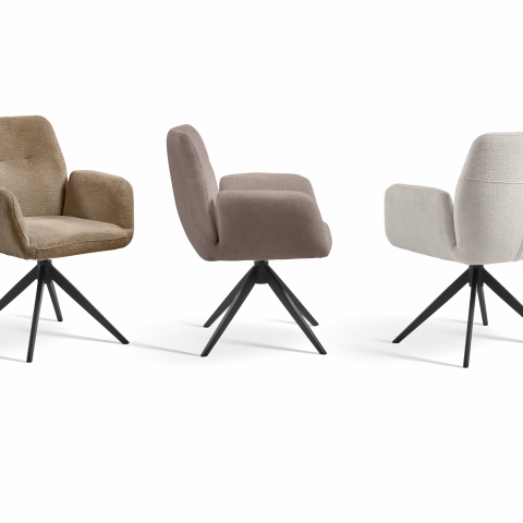 Chaises pieds métal tournant avec ou sans accoudoirs, disponible en 3 coloris